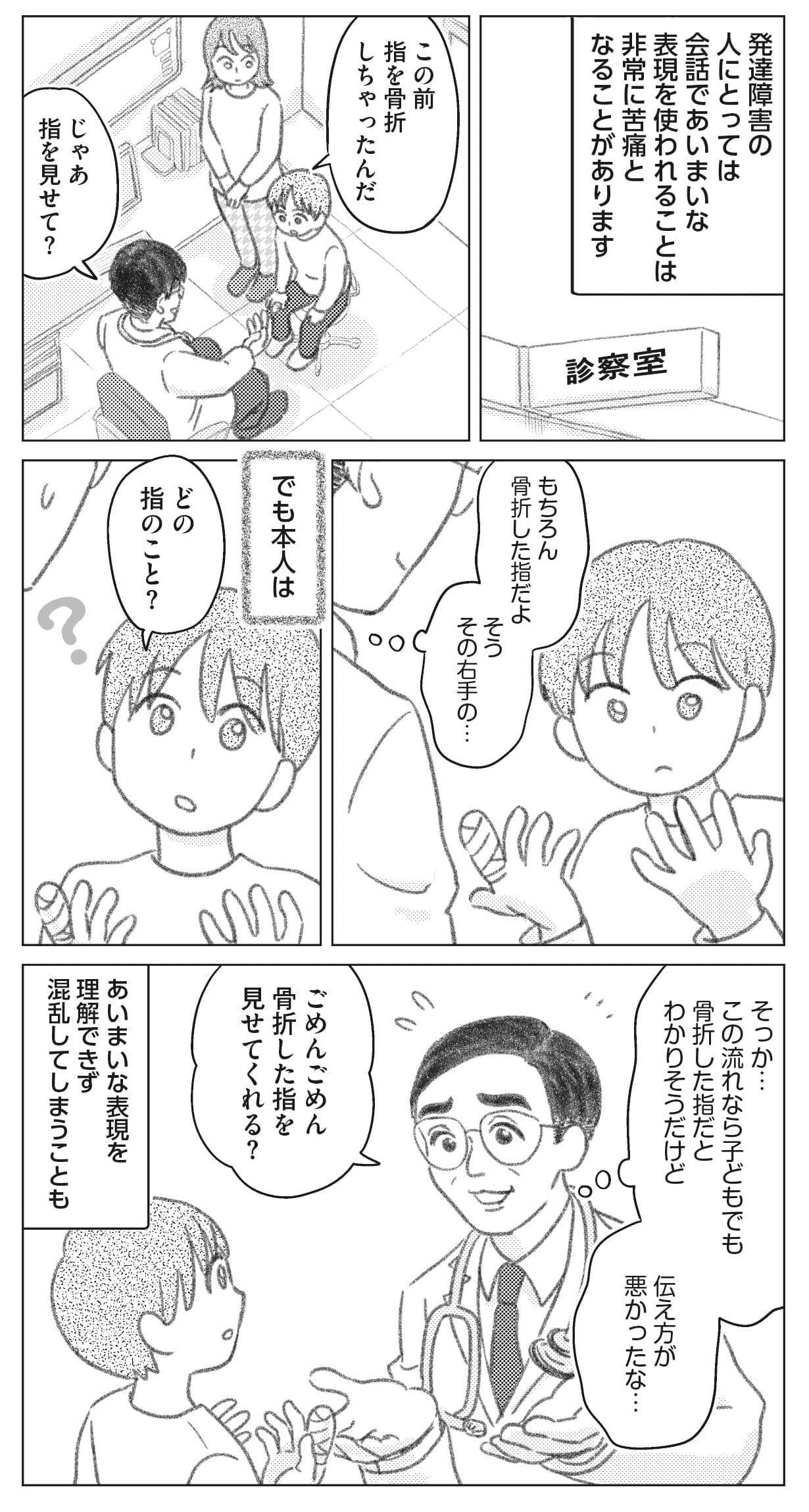 “発達障害の人が見ている世界”と、コミュニケーション方法について、医師の豊富なエピソードとともに、マンガでわかりやすく伝えていきます。