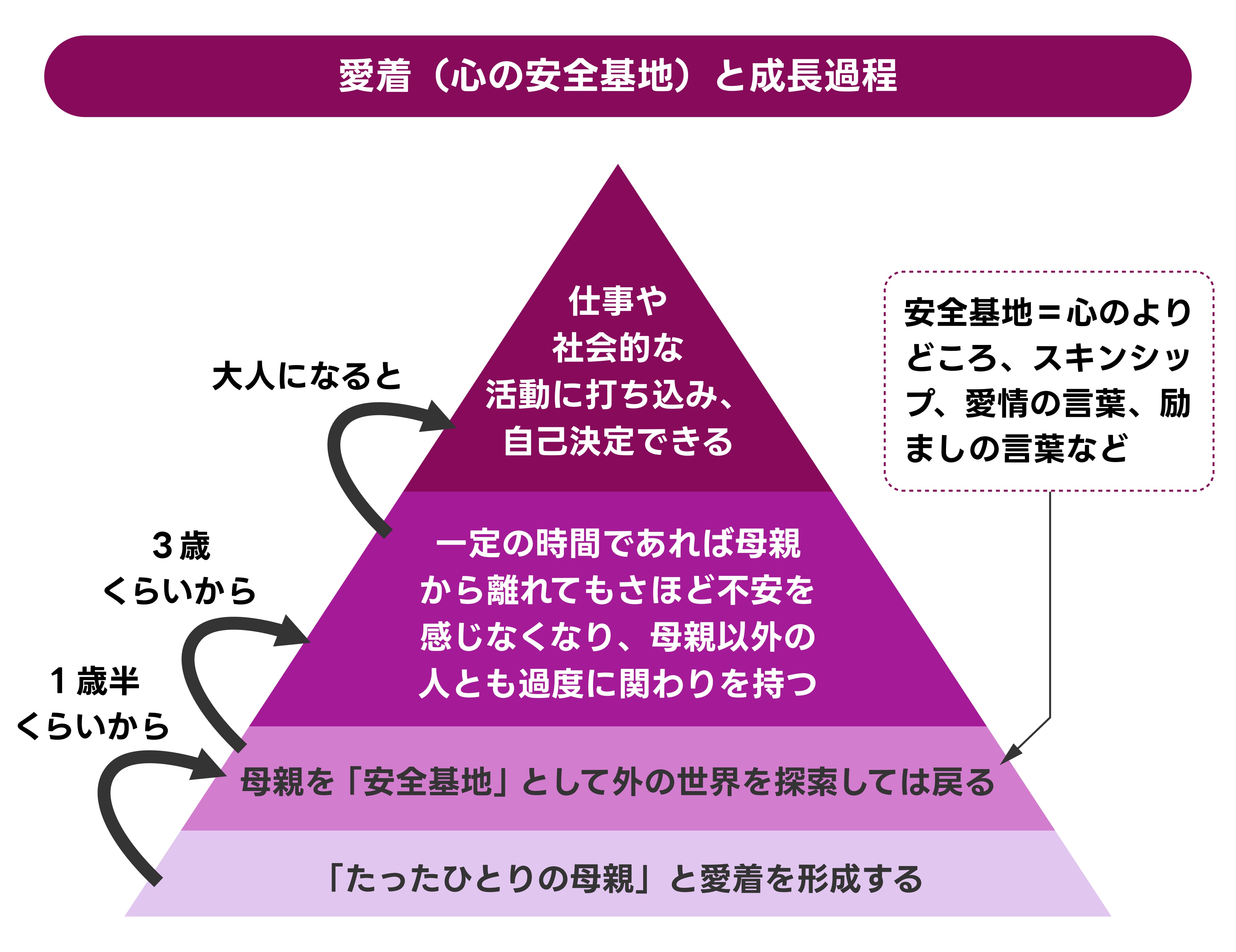 こういったことの繰り返しで愛着が健全に形成されると、大人になったときにも、自分にとって最適な選択をし、安心して生きていけます。