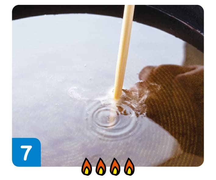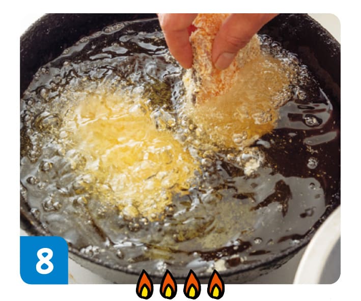7に6のたらを入れる。衣がかたまってきたら、とちゅうで何回かうら返しながら揚げる。