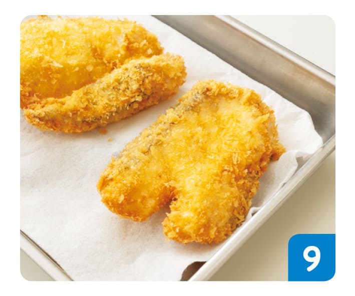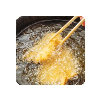 (たらを揚げる)