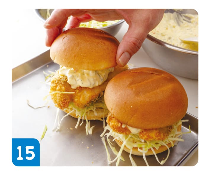 フィッシュバーガーも、自分でつくれるよ!お店で売っているものに、まけないおいしさだぞ。