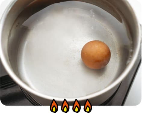 鍋に★のたまごと水を入れて火にかける。わいたら中火にし12分ゆでる。