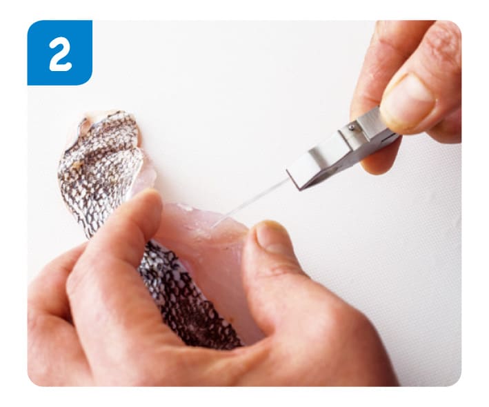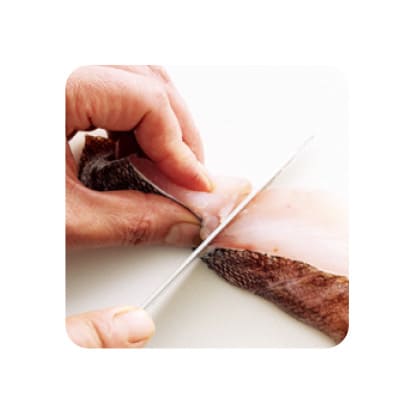 たらは、骨ぬきで、身の中にある小骨をぬいてとる。