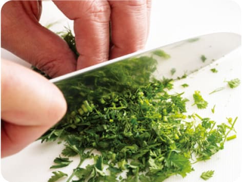 ディル、イタリアンパセリ、エストラゴンは、茎ごとみじん切りにする。