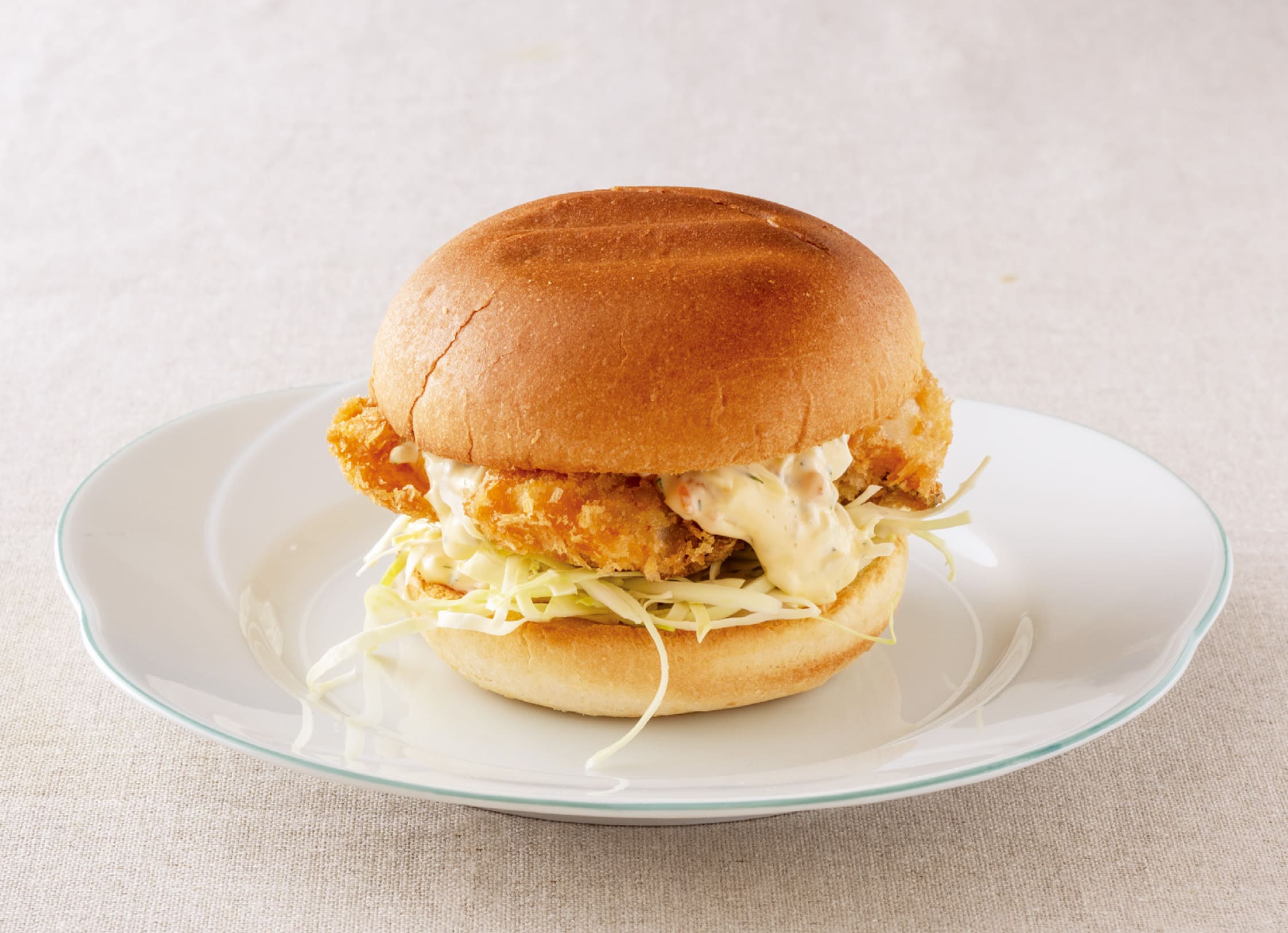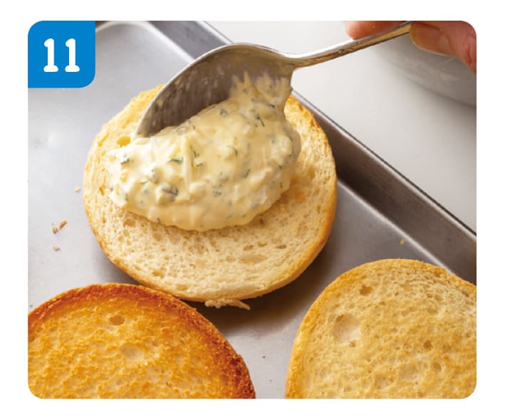 下になる2つのバンズに、タルタルソースを大さじ1ぐらいずつのせる。