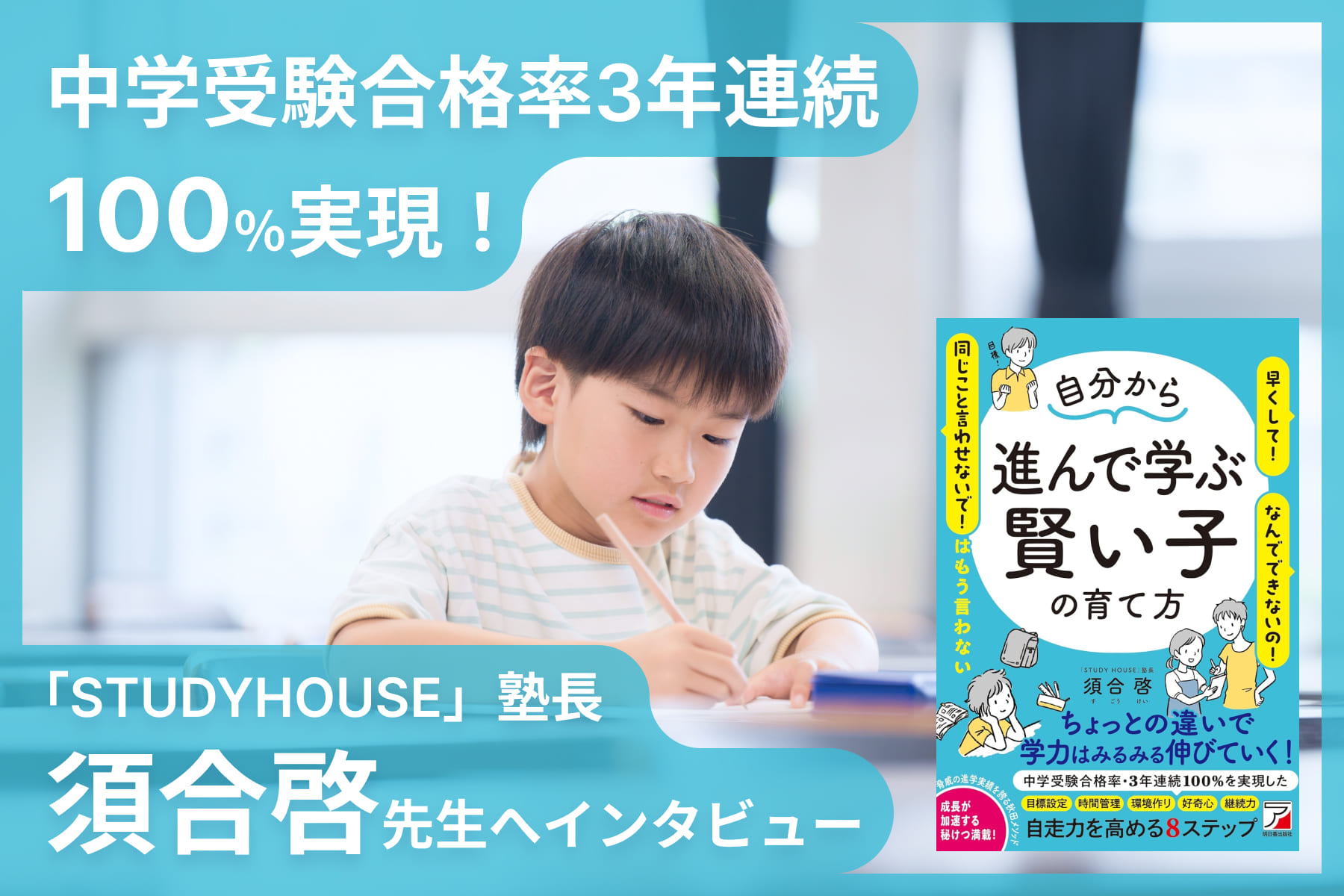 中学受験合格率3年連続100%実現!「STUDYHOUSE」塾長須合啓先生へインタビュー